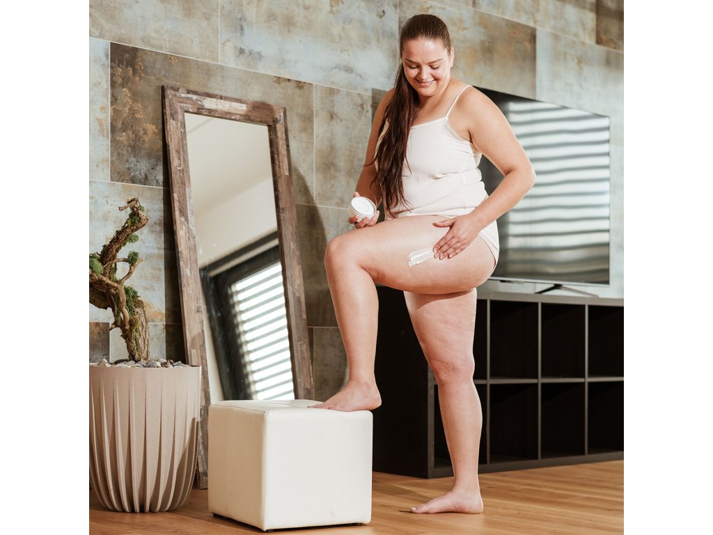 Naber z kelímku přiměřené množství krému a krouživými pohyby ho vmasíruj do pokožky stehen, boků a zadku. Používej nejlépe 2x denně, ideálně ráno a večer. První výsledky by měly být znát po 1-2 měsících – tady se vytrvalost fakt vyplatí.